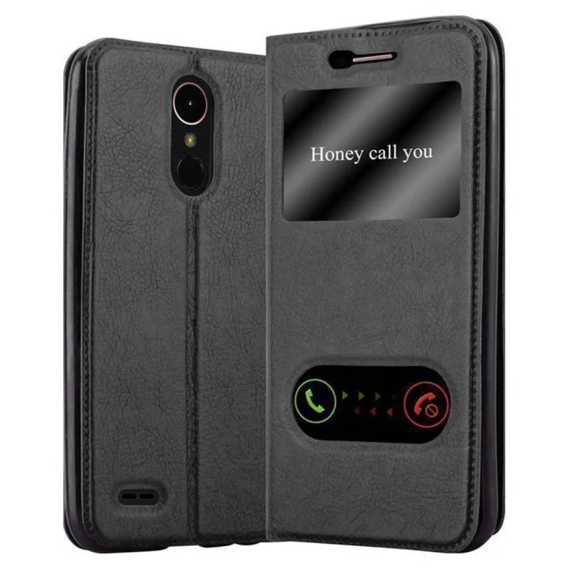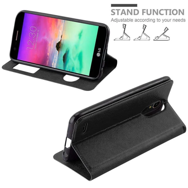 Cadorabo Ohišje, združljivo z LG K10 2017 v črni komet - Zaščitni ovitek z magnetnim zapiranjem, stoječo funkcijo in 2 okencema za gledanje