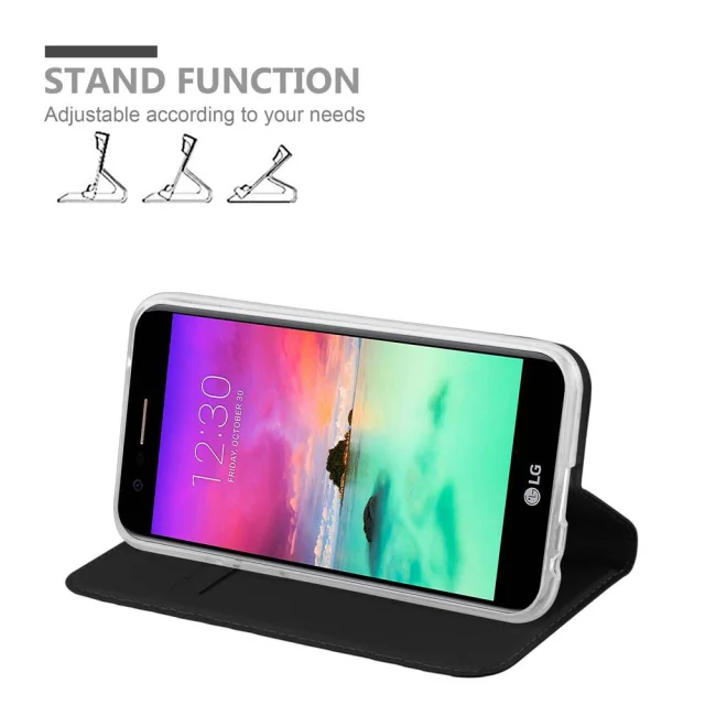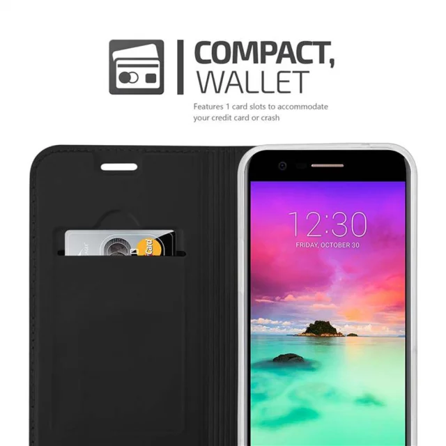 Cadorabo Ohišje, združljivo z LG K10 2017 v klasična črna - Zaščitni ovitek z magnetnim zapiranjem, stoječo funkcijo in režo za kartice