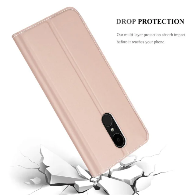 Cadorabo Ohišje, združljivo z LG K4 2017 v klasična rožnata zlata - Zaščitni ovitek z magnetnim zapiranjem, stoječo funkcijo in režo za kartice