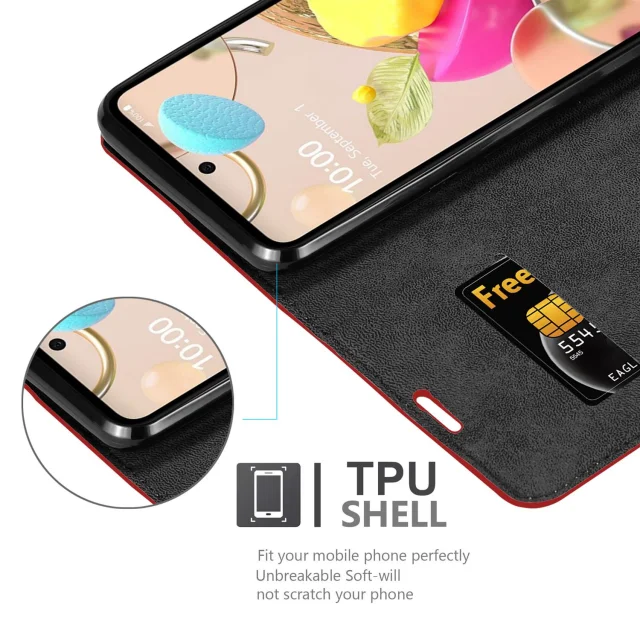 Cadorabo Ohišje, združljivo z LG K42 v rdeče jabolko - Zaščitni ovitek z magnetnim zapiranjem, stoječo funkcijo in režo za kartice