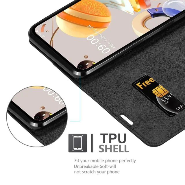 Cadorabo Ohišje, združljivo z LG K61 v nočna črna - Zaščitni ovitek z magnetnim zapiranjem, stoječo funkcijo in režo za kartice