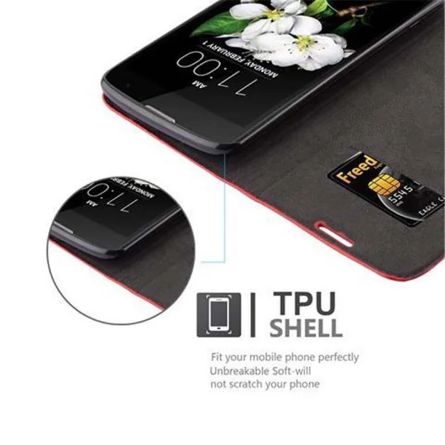 Cadorabo Ohišje, združljivo z LG K7 2017 v rdeče jabolko - Zaščitni ovitek z magnetnim zapiranjem, stoječo funkcijo in režo za kartice