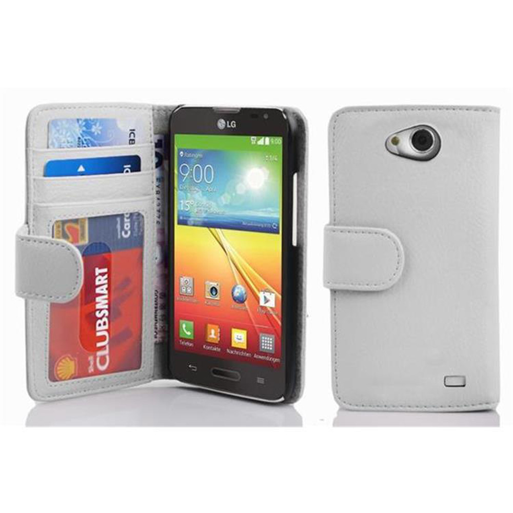 Cadorabo Ohišje, združljivo z LG L70 (1. SIM) v snežno bela - Zaščitni ovitek z magnetnim zapiranjem in 3 režami za kartice