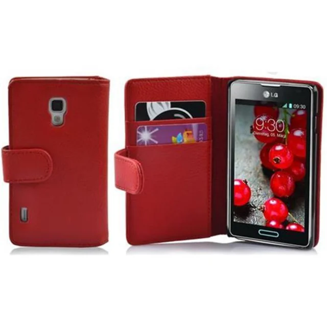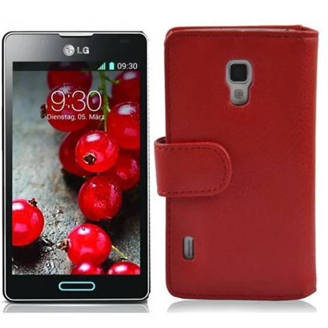 Cadorabo Ohišje, združljivo z LG OPTIMUS L7 II v rdeče sladkorno jabolko - Zaščitni ovitek iz teksturiranega umetnega usnja in žep za kartice