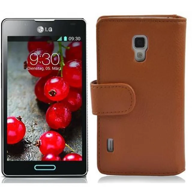 Cadorabo Ohišje, združljivo z LG OPTIMUS L7 II v sedlo rjave barve - Zaščitni ovitek iz teksturiranega umetnega usnja in žep za kartice