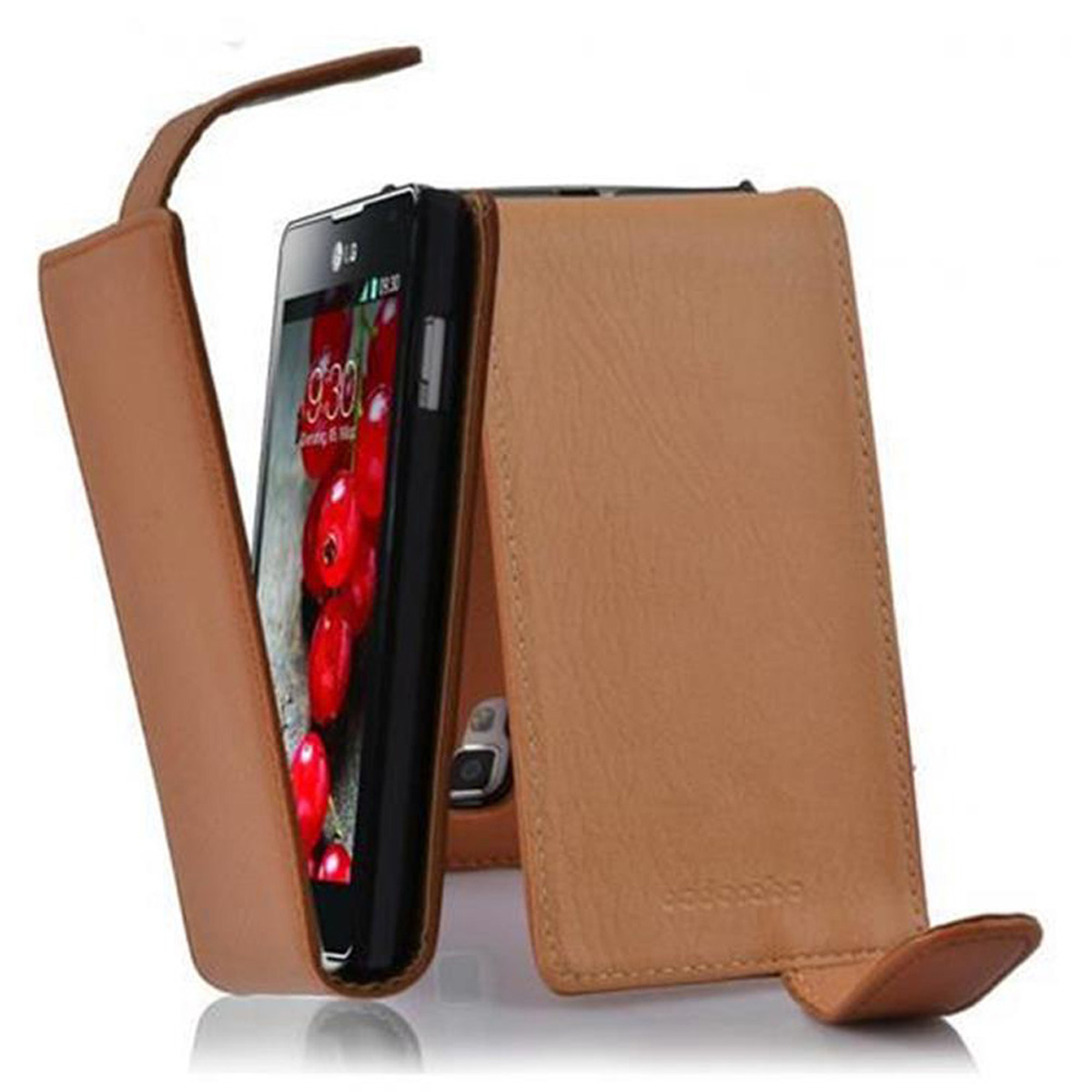 Cadorabo Ohišje, združljivo z LG OPTIMUS L7 II v sedlo rjave barve - Zaščitni ovitek v obliki flipa iz teksturiranega umetnega usnja