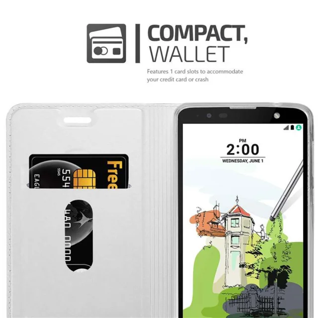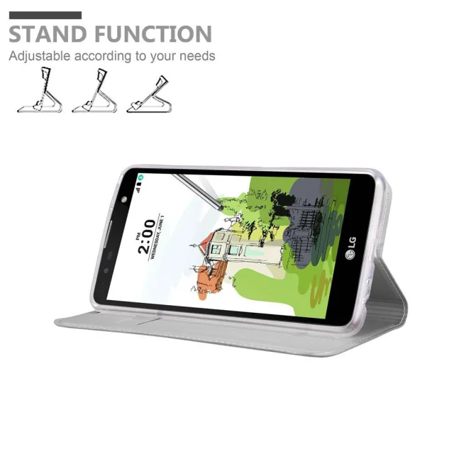 Cadorabo Ohišje, združljivo z LG STYLUS 2 v klasično srebrno - Zaščitni ovitek z magnetnim zapiranjem, stoječo funkcijo in režo za kartice