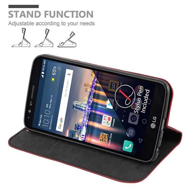 Cadorabo Ohišje, združljivo z LG STYLUS 3 v rdeče jabolko - Zaščitni ovitek z magnetnim zapiranjem, stoječo funkcijo in režo za kartice