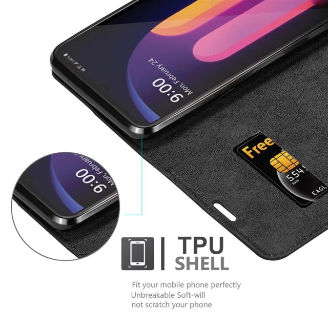 Cadorabo Ohišje, združljivo z LG V60 ThinQ v nočna črna - Zaščitni ovitek z magnetnim zapiranjem, stoječo funkcijo in režo za kartice