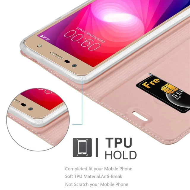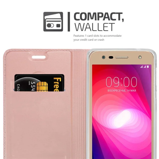 Cadorabo Ohišje, združljivo z LG X POWER 2 v klasična rožnata zlata - Zaščitni ovitek z magnetnim zapiranjem, stoječo funkcijo in režo za kartice