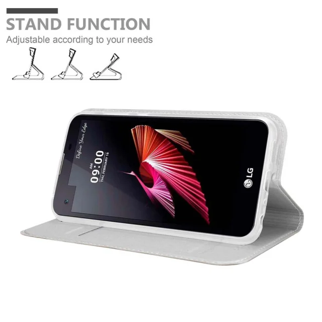 Cadorabo Ohišje, združljivo z LG X SCREEN v klasično srebrno - Zaščitni ovitek z magnetnim zapiranjem, stoječo funkcijo in režo za kartice