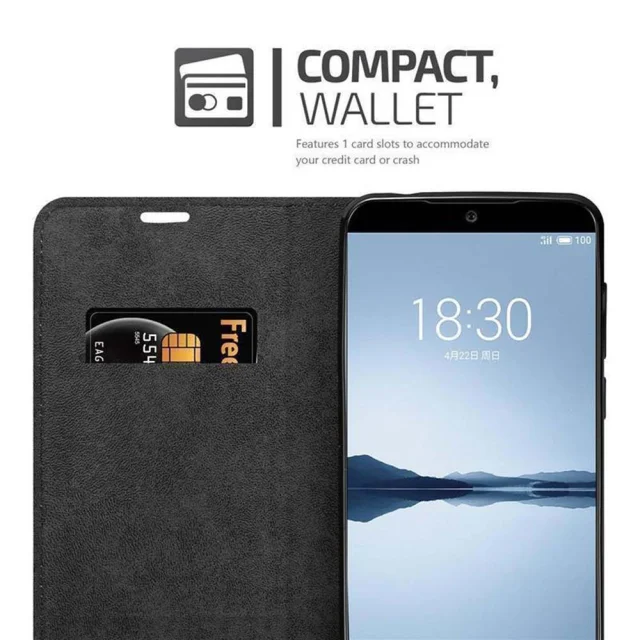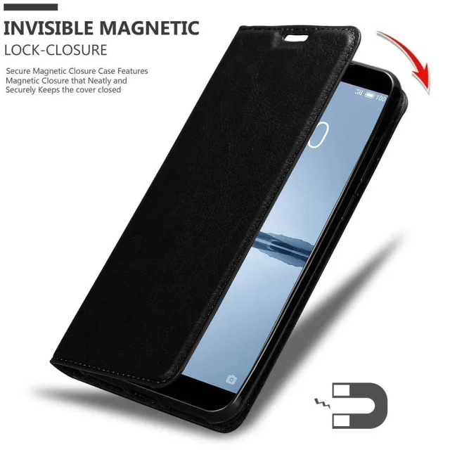 Cadorabo Ohišje, združljivo z MEIZU 15 v nočna črna - Zaščitni ovitek z magnetnim zapiranjem, stoječo funkcijo in režo za kartice
