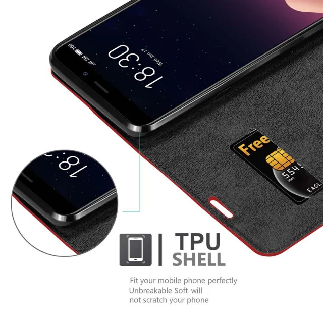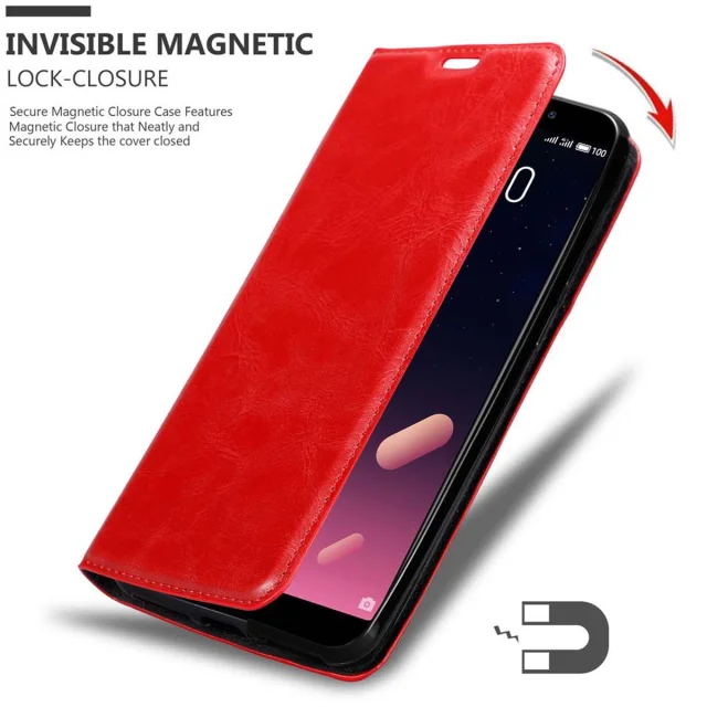 Cadorabo Ohišje, združljivo z MEIZU M6S v rdeče jabolko - Zaščitni ovitek z magnetnim zapiranjem, stoječo funkcijo in režo za kartice