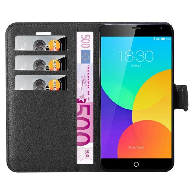 Cadorabo Ohišje, združljivo z MEIZU MX4 v oksidna črna - Zaščitni ovitek z magnetnim zapiranjem, stoječo funkcijo in režo za kartice