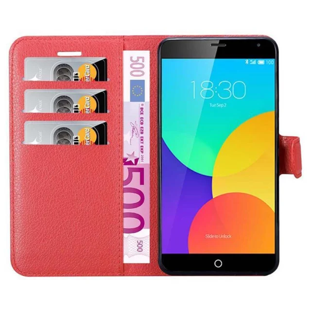 Cadorabo Ohišje, združljivo z MEIZU MX4 v rdeče sladkorno jabolko - Zaščitni ovitek z magnetnim zapiranjem, stoječo funkcijo in režo za kartice
