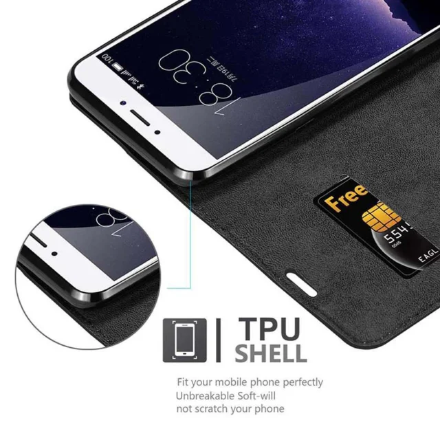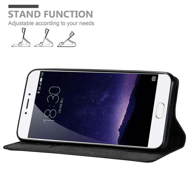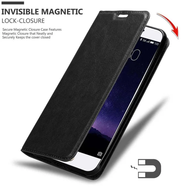 Cadorabo Ohišje, združljivo z MEIZU MX6 v nočna črna - Zaščitni ovitek z magnetnim zapiranjem, stoječo funkcijo in režo za kartice