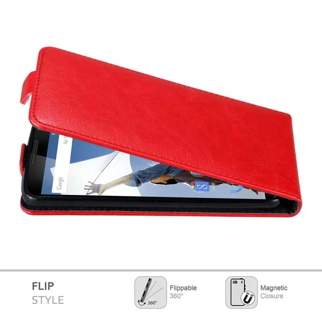 Cadorabo Ohišje, združljivo z Motorola Google NEXUS 6 v rdeče jabolko - Zaščitni ovitek v obliki flipa z magnetnim zapiranjem