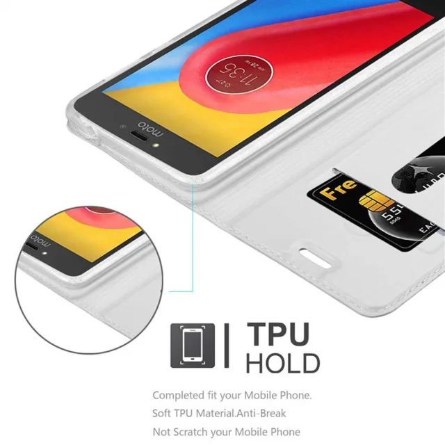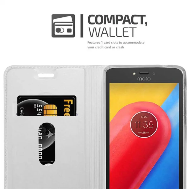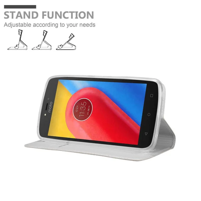 Cadorabo Ohišje, združljivo z Motorola MOTO C PLUS v klasično srebrno - Zaščitni ovitek z magnetnim zapiranjem, stoječo funkcijo in režo za kartice
