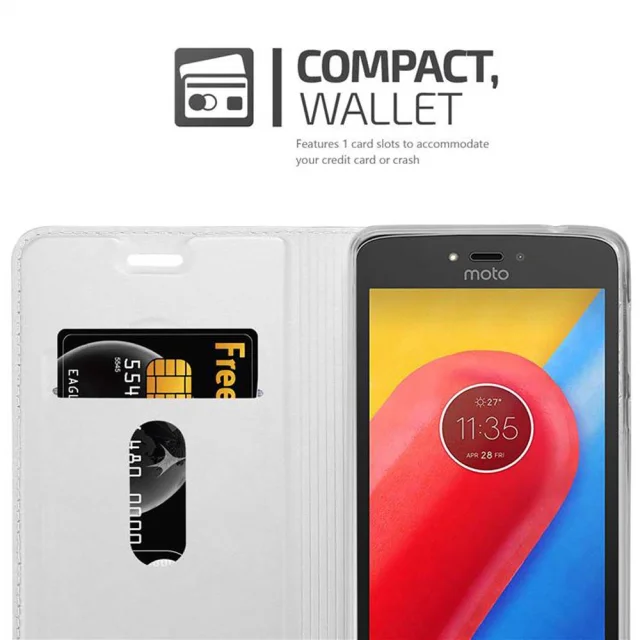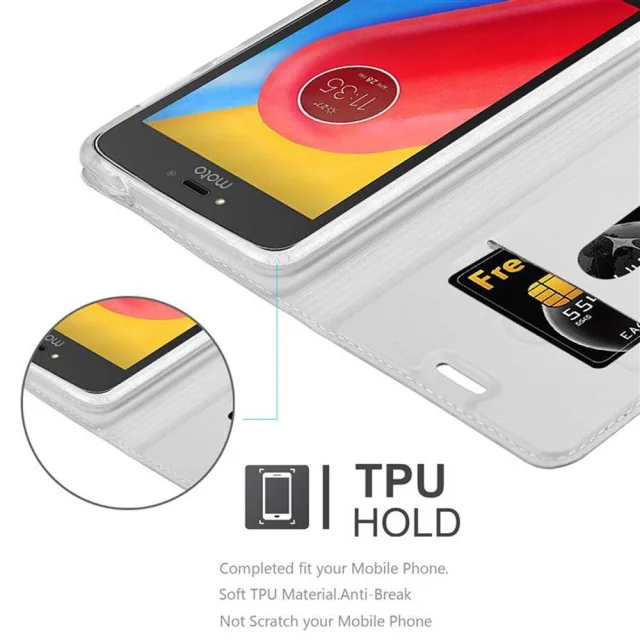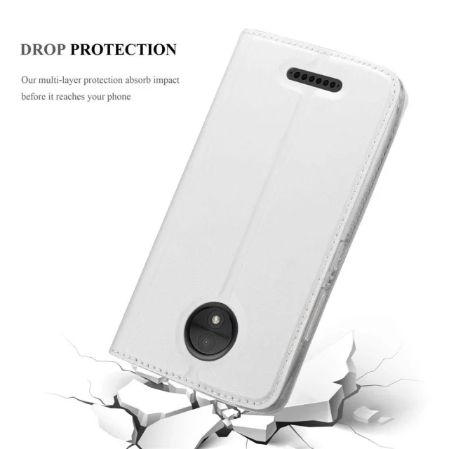 Cadorabo Ohišje, združljivo z Motorola MOTO C v klasično srebrno - Zaščitni ovitek z magnetnim zapiranjem, stoječo funkcijo in režo za kartice