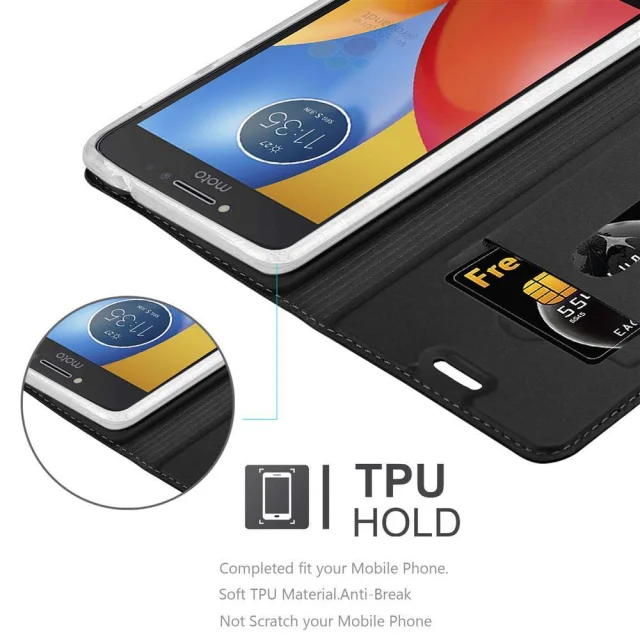 Cadorabo Ohišje, združljivo z Motorola MOTO E4 v klasična črna - Zaščitni ovitek z magnetnim zapiranjem, stoječo funkcijo in režo za kartice