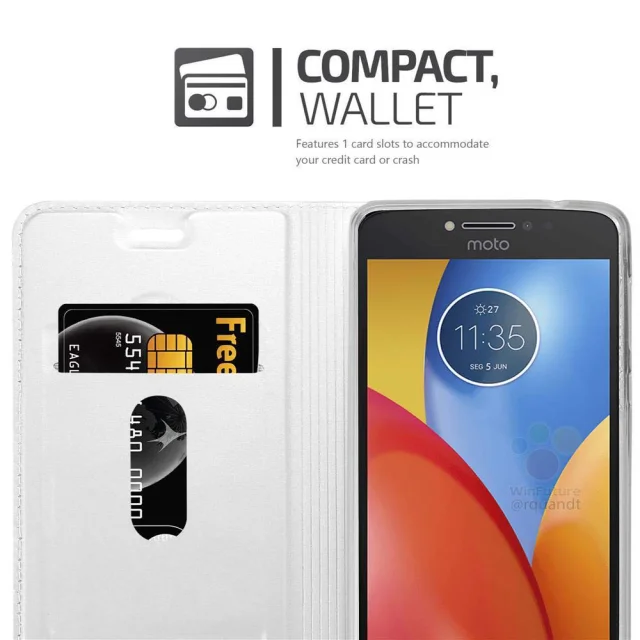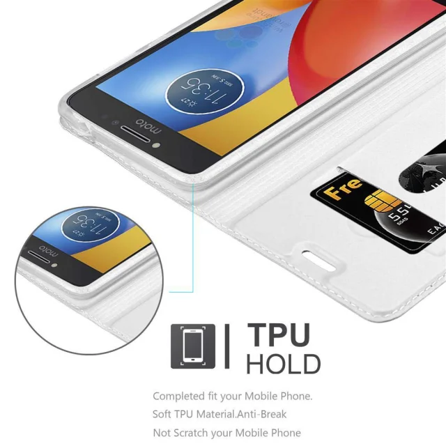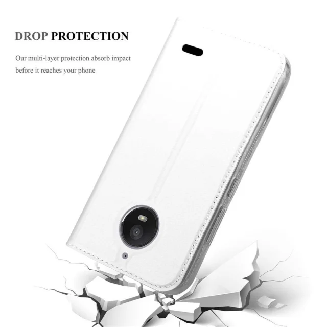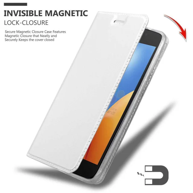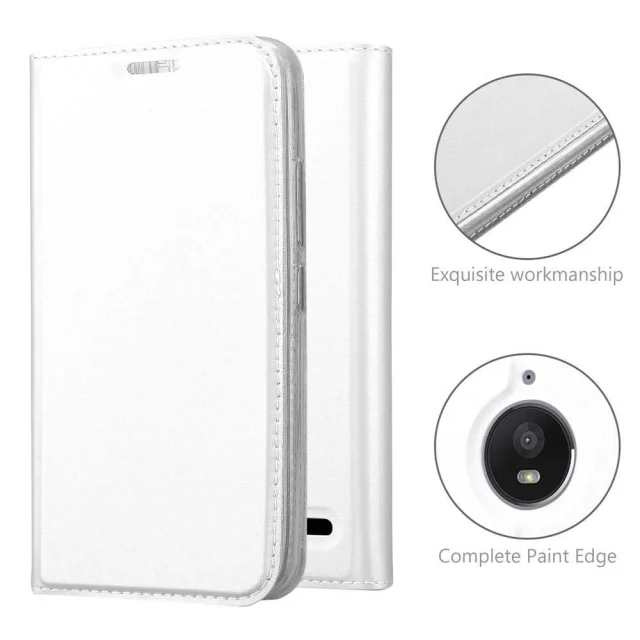 Cadorabo Ohišje, združljivo z Motorola MOTO E4 v klasično srebrno - Zaščitni ovitek z magnetnim zapiranjem, stoječo funkcijo in režo za kartice