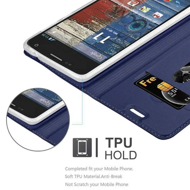 Cadorabo Ohišje, združljivo z Motorola MOTO G2 v klasična temno modra - Zaščitni ovitek z magnetnim zapiranjem, stoječo funkcijo in režo za kartice