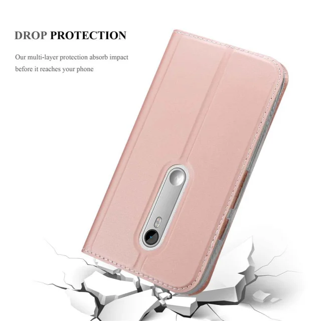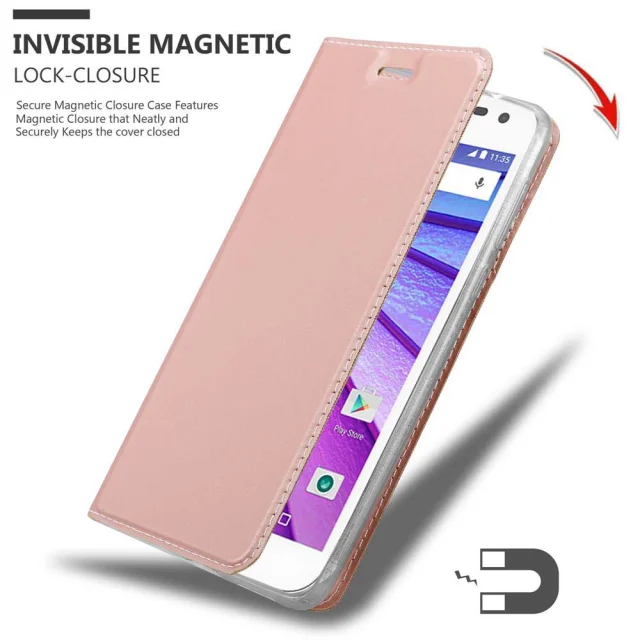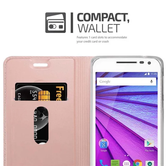 Cadorabo Ohišje, združljivo z Motorola MOTO G3 v klasična rožnata zlata - Zaščitni ovitek z magnetnim zapiranjem, stoječo funkcijo in režo za kartice
