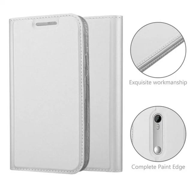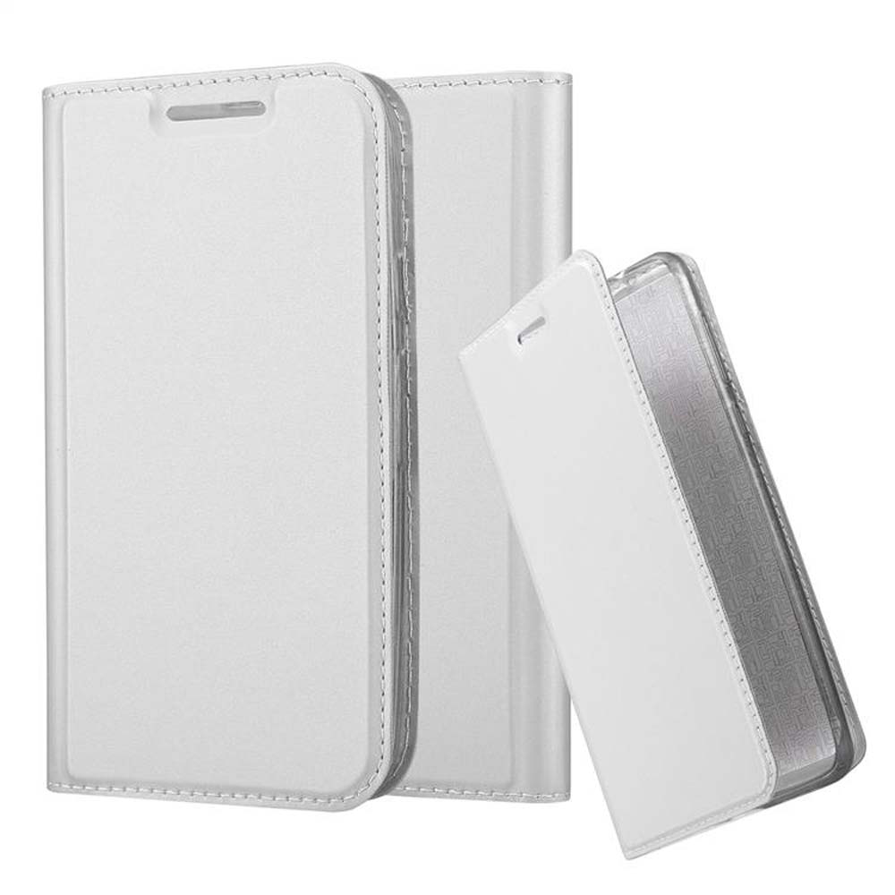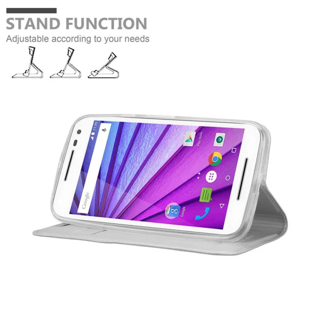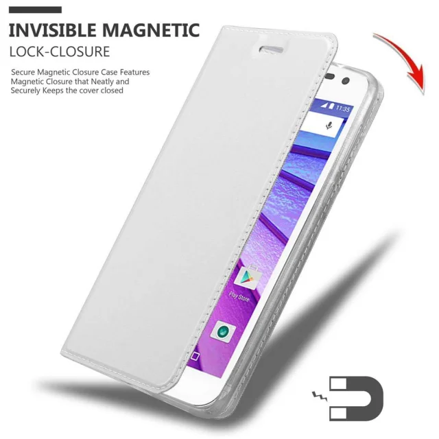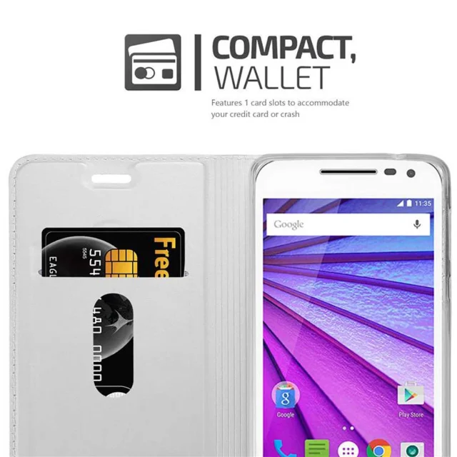 Cadorabo Ohišje, združljivo z Motorola MOTO G3 v klasično srebrno - Zaščitni ovitek z magnetnim zapiranjem, stoječo funkcijo in režo za kartice