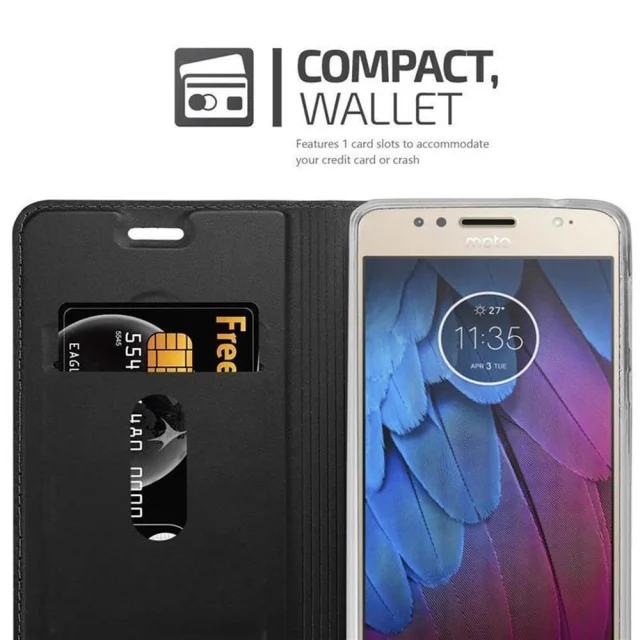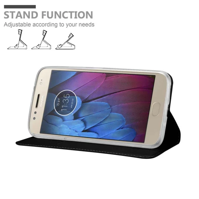 Cadorabo Ohišje, združljivo z Motorola MOTO G5S PLUS v klasična črna - Zaščitni ovitek z magnetnim zapiranjem, stoječo funkcijo in režo za kartice