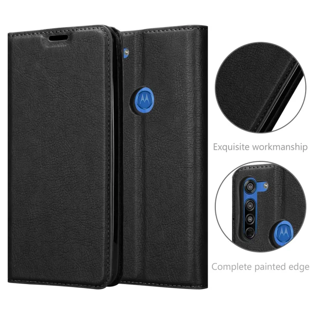 Cadorabo Ohišje, združljivo z Motorola MOTO G8 v nočna črna - Zaščitni ovitek z magnetnim zapiranjem, stoječo funkcijo in režo za kartice
