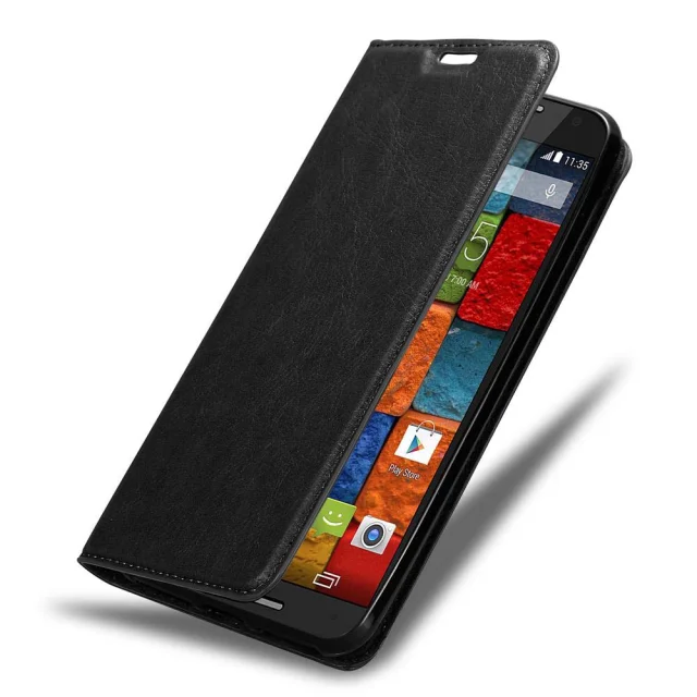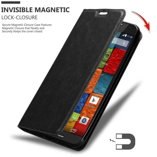 Cadorabo Ohišje, združljivo z Motorola MOTO X2 v nočna črna - Zaščitni ovitek z magnetnim zapiranjem, stoječo funkcijo in režo za kartice