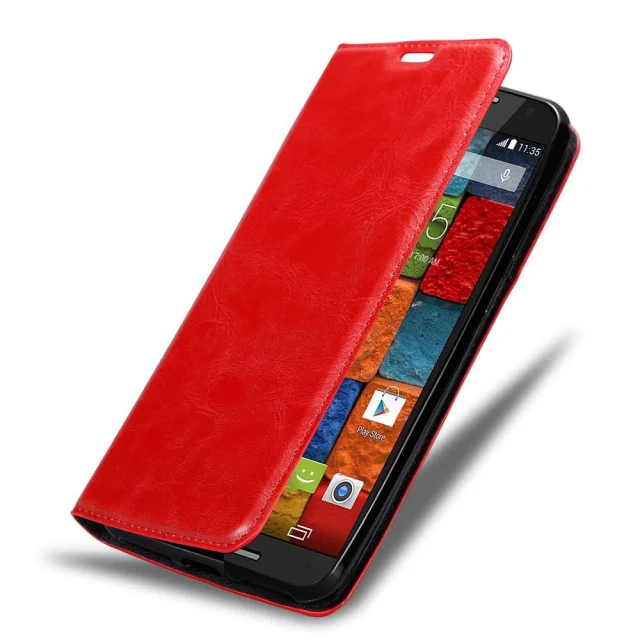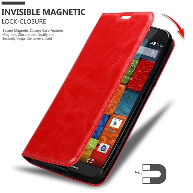 Cadorabo Ohišje, združljivo z Motorola MOTO X2 v rdeče jabolko - Zaščitni ovitek z magnetnim zapiranjem, stoječo funkcijo in režo za kartice