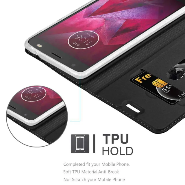 Cadorabo Ohišje, združljivo z Motorola MOTO Z v klasična črna - Zaščitni ovitek z magnetnim zapiranjem, stoječo funkcijo in režo za kartice