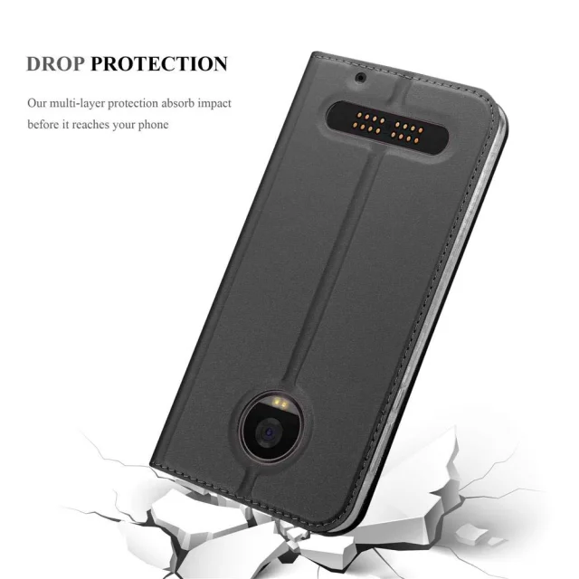 Cadorabo Ohišje, združljivo z Motorola MOTO Z2 v klasična črna - Zaščitni ovitek z magnetnim zapiranjem, stoječo funkcijo in režo za kartice