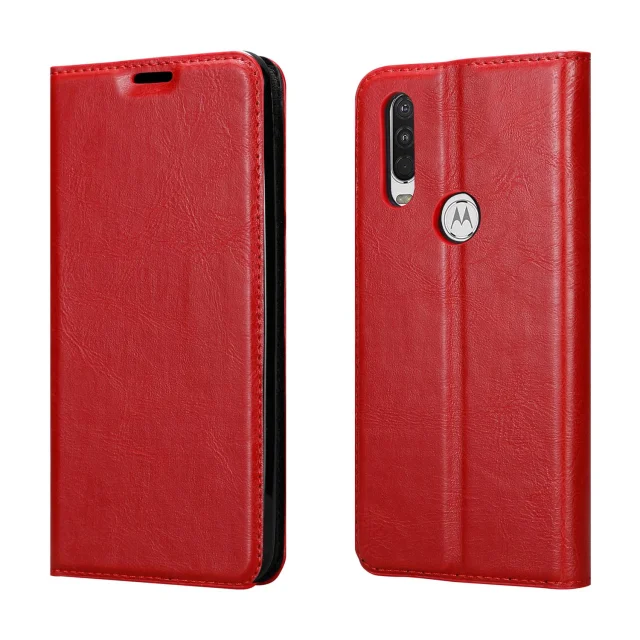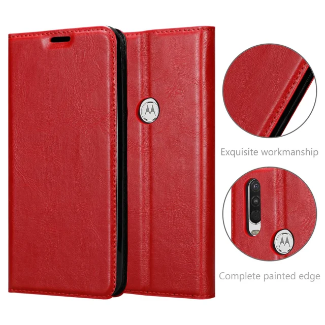 Cadorabo Ohišje, združljivo z Motorola ONE ACTION v rdeče jabolko - Zaščitni ovitek z magnetnim zapiranjem, stoječo funkcijo in režo za kartice