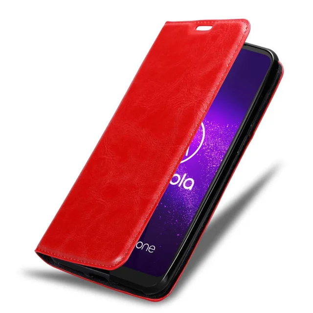 Cadorabo Ohišje, združljivo z Motorola ONE MACRO v rdeče jabolko - Zaščitni ovitek z magnetnim zapiranjem, stoječo funkcijo in režo za kartice