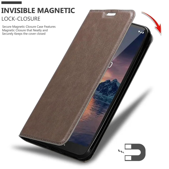 Cadorabo Ohišje, združljivo z Nokia 1.3 v kavovinsko rdeča - Zaščitni ovitek z magnetnim zapiranjem, stoječo funkcijo in režo za kartice