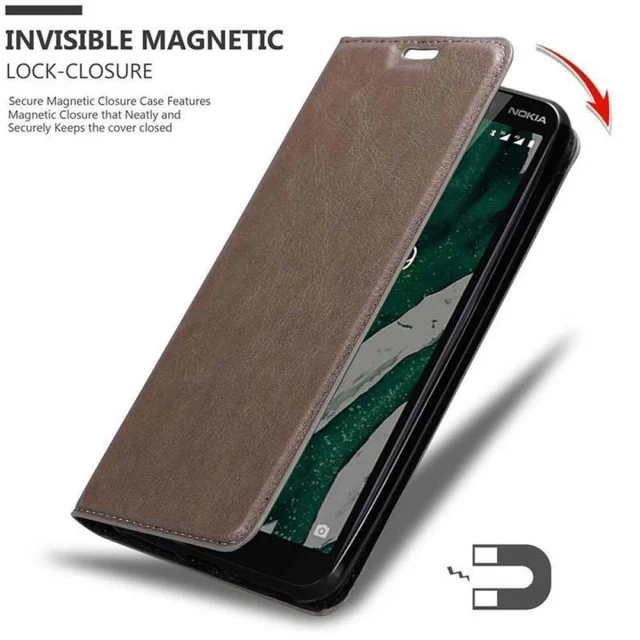 Cadorabo Ohišje, združljivo z Nokia 1 PLUS v kavovinsko rdeča - Zaščitni ovitek z magnetnim zapiranjem, stoječo funkcijo in režo za kartice
