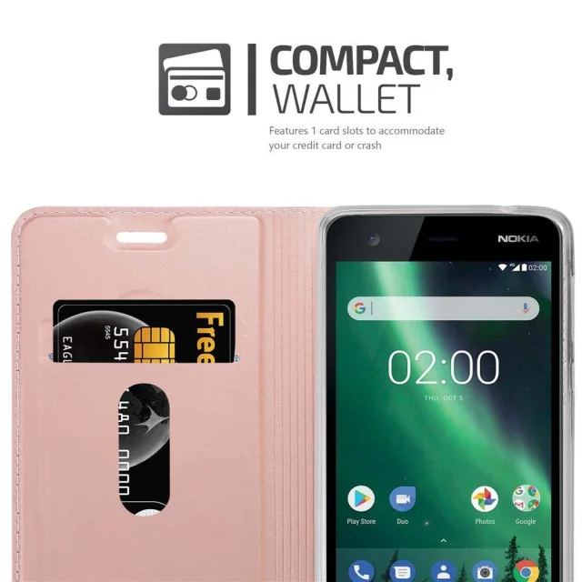 Cadorabo Ohišje, združljivo z Nokia 2 2017 v klasična rožnata zlata - Zaščitni ovitek z magnetnim zapiranjem, stoječo funkcijo in režo za kartice