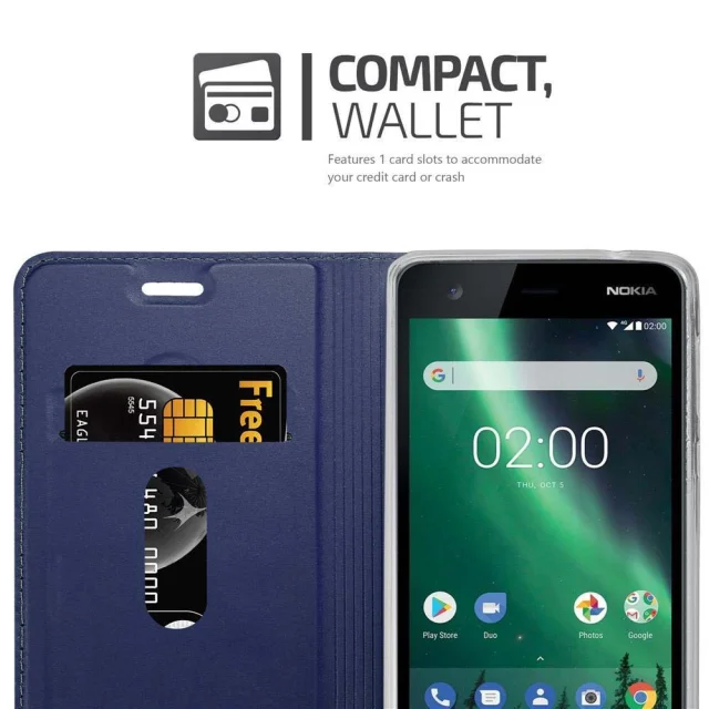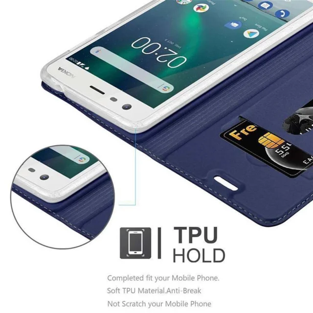 Cadorabo Ohišje, združljivo z Nokia 2 2017 v klasična temno modra - Zaščitni ovitek z magnetnim zapiranjem, stoječo funkcijo in režo za kartice
