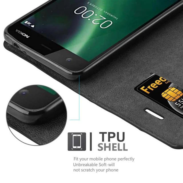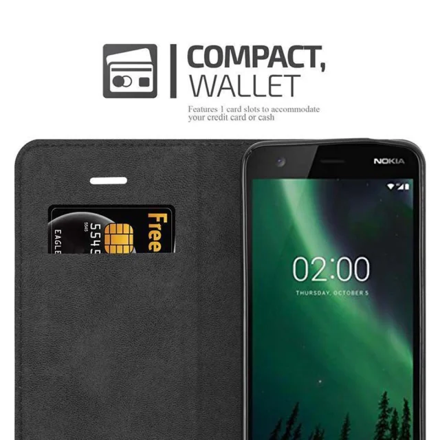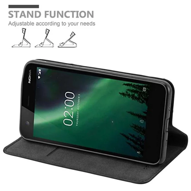 Cadorabo Ohišje, združljivo z Nokia 2 2017 v nočna črna - Zaščitni ovitek z magnetnim zapiranjem, stoječo funkcijo in režo za kartice