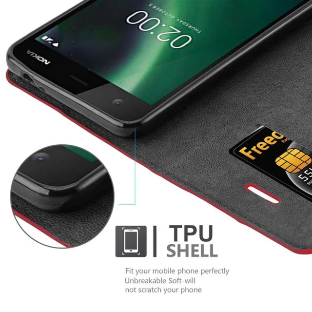 Cadorabo Ohišje, združljivo z Nokia 2 2017 v rdeče jabolko - Zaščitni ovitek z magnetnim zapiranjem, stoječo funkcijo in režo za kartice