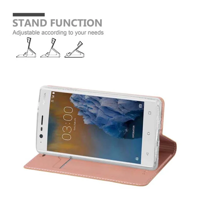 Cadorabo Ohišje, združljivo z Nokia 3 2017 v klasična rožnata zlata - Zaščitni ovitek z magnetnim zapiranjem, stoječo funkcijo in režo za kartice
