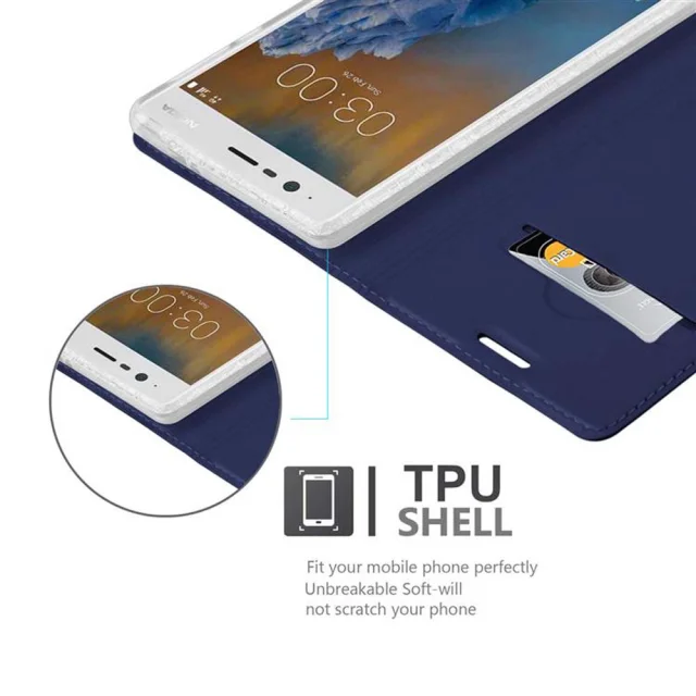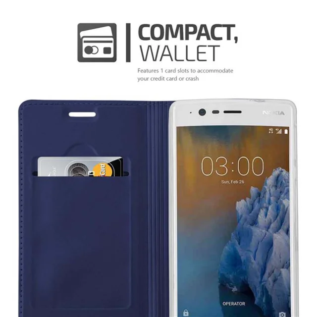 Cadorabo Ohišje, združljivo z Nokia 3 2017 v klasična temno modra - Zaščitni ovitek z magnetnim zapiranjem, stoječo funkcijo in režo za kartice