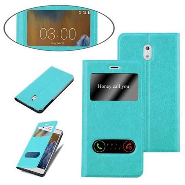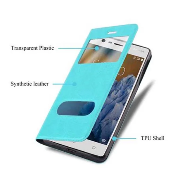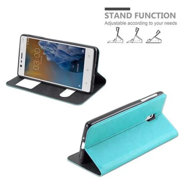 Cadorabo Ohišje, združljivo z Nokia 3 2017 v mint turquoise - Zaščitni ovitek z magnetnim zapiranjem, stoječo funkcijo in 2 okencema za gledanje