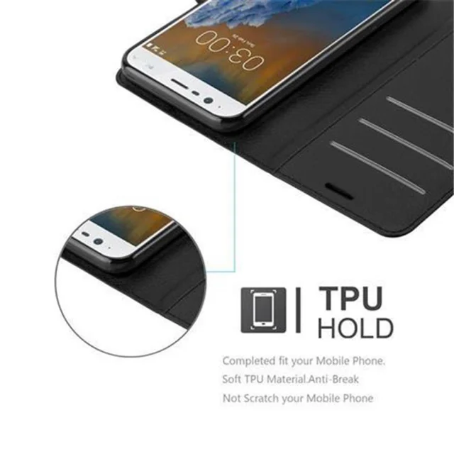 Cadorabo Ohišje, združljivo z Nokia 3 2017 v oksidna črna - Zaščitni ovitek z magnetnim zapiranjem, stoječo funkcijo in režo za kartice