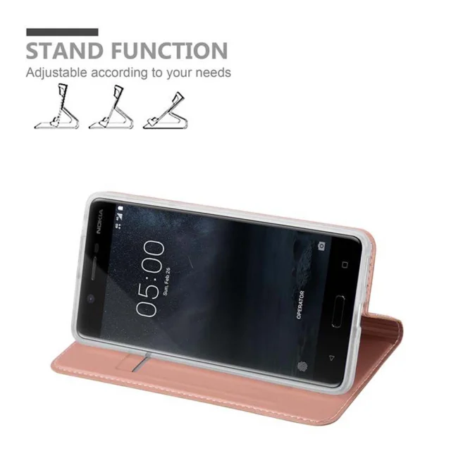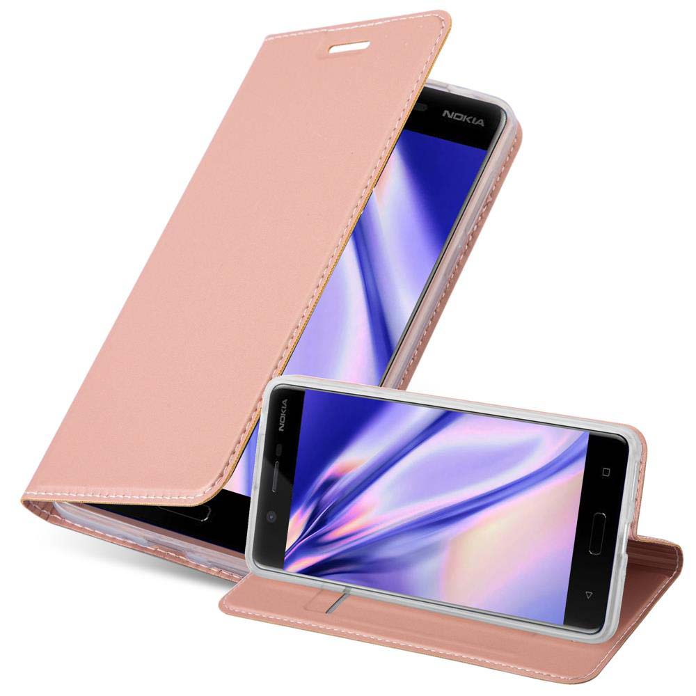 Cadorabo Ohišje, združljivo z Nokia 5 2017 v klasična rožnata zlata - Zaščitni ovitek z magnetnim zapiranjem, stoječo funkcijo in režo za kartice
