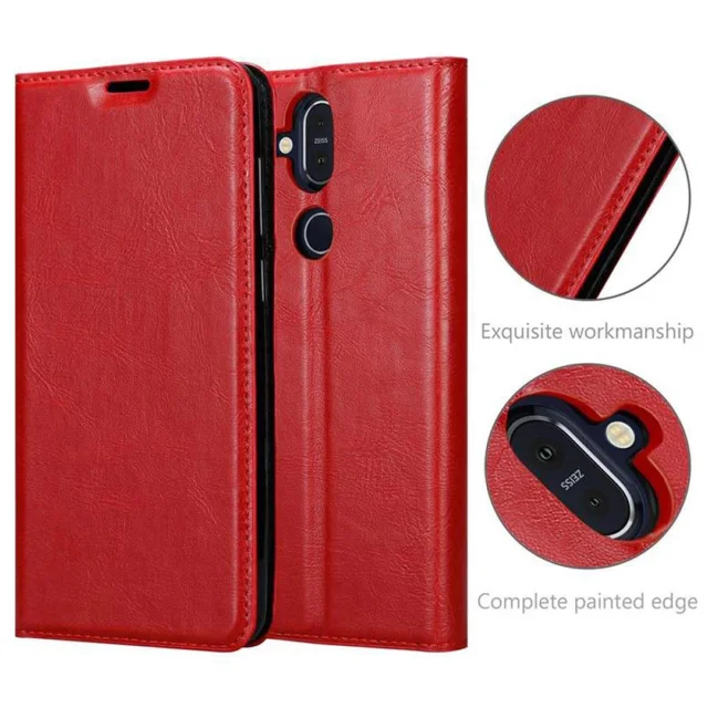 Cadorabo Ohišje, združljivo z Nokia 8.1 v rdeče jabolko - Zaščitni ovitek z magnetnim zapiranjem, stoječo funkcijo in režo za kartice