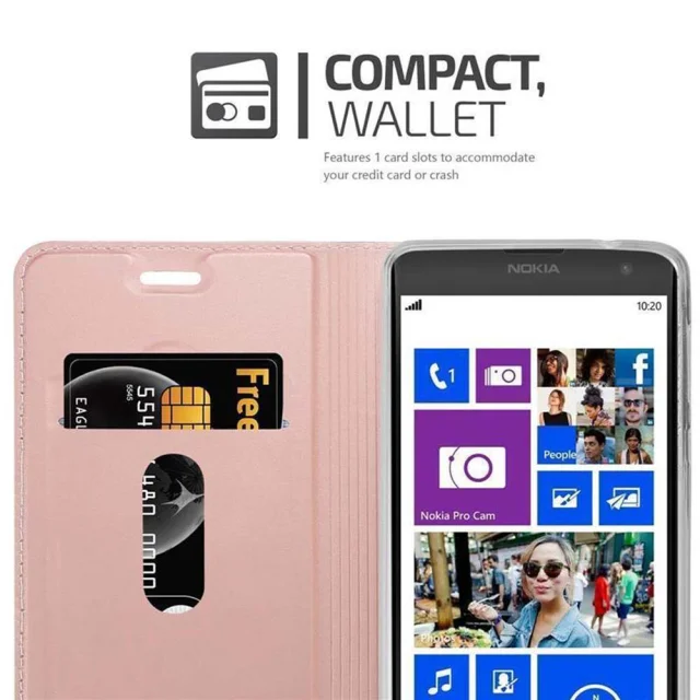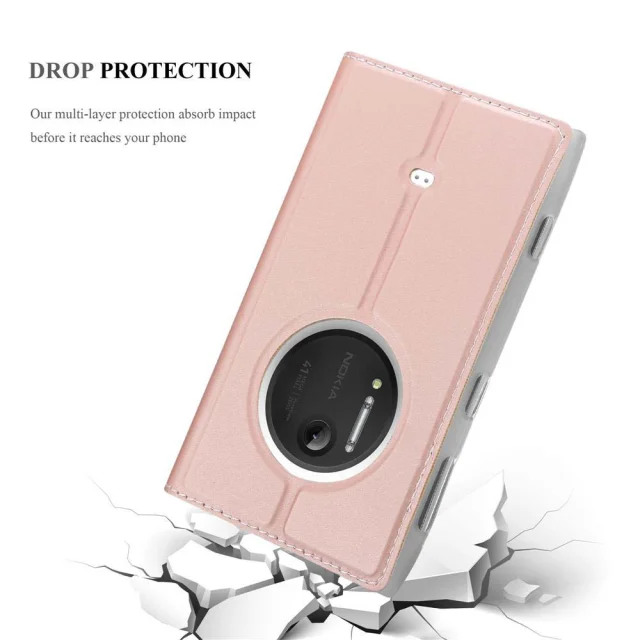 Cadorabo Ohišje, združljivo z Nokia Lumia 1020 v klasična rožnata zlata - Zaščitni ovitek z magnetnim zapiranjem, stoječo funkcijo in režo za kartice