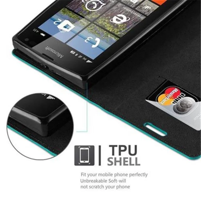 Cadorabo Ohišje, združljivo z Nokia Lumia 435 v bencinsko turkizna - Zaščitni ovitek z magnetnim zapiranjem, stoječo funkcijo in režo za kartice